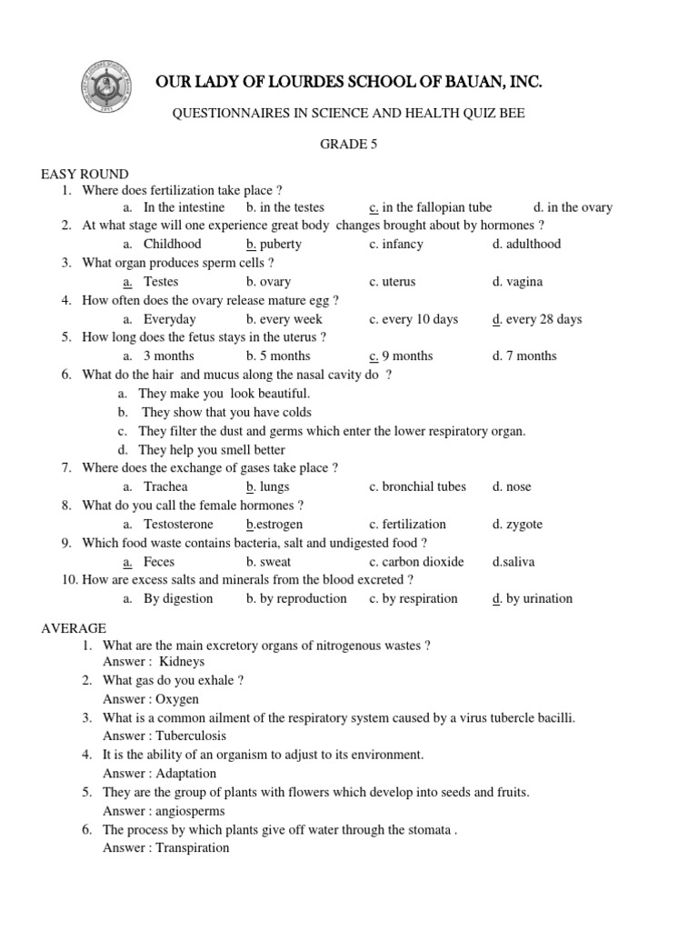 Questionnaires in Science and Health Quiz Bee Petal Flowers